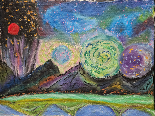 Original Oil Pastel Energy Art: New Mexico Impression/Abstract Shamanic Landscape Artwork