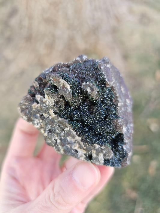 Duftite & Hematite on Druzy Quartz - 109g Congo Mineral Specimen for Grounding